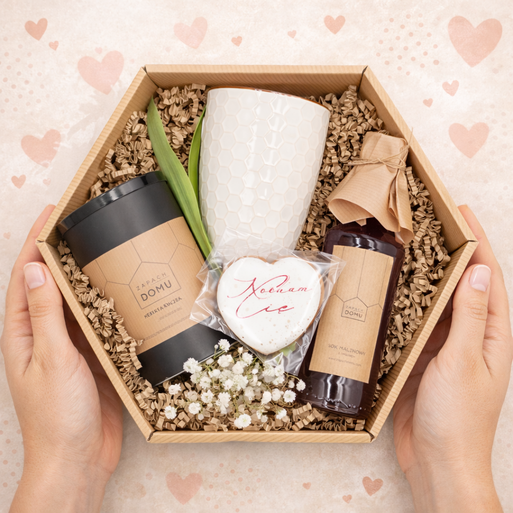 Herbaciane serce to walentynkowy zestaw, który otula ciepłem i smakiem. Ceramiczny kubek 360 ml zaprasza do celebrowania wspólnej chwili, a czarna herbata z dodatkiem owocowego syropu tworzy idealny napój na zimowy wieczór. Całość dopełnia piernikowe serduszko z napisem „Kocham Cię” — słodki gest, który mówi wszystko. To gotowy prezent na Walentynki: prosty, elegancki i pełen emocji.