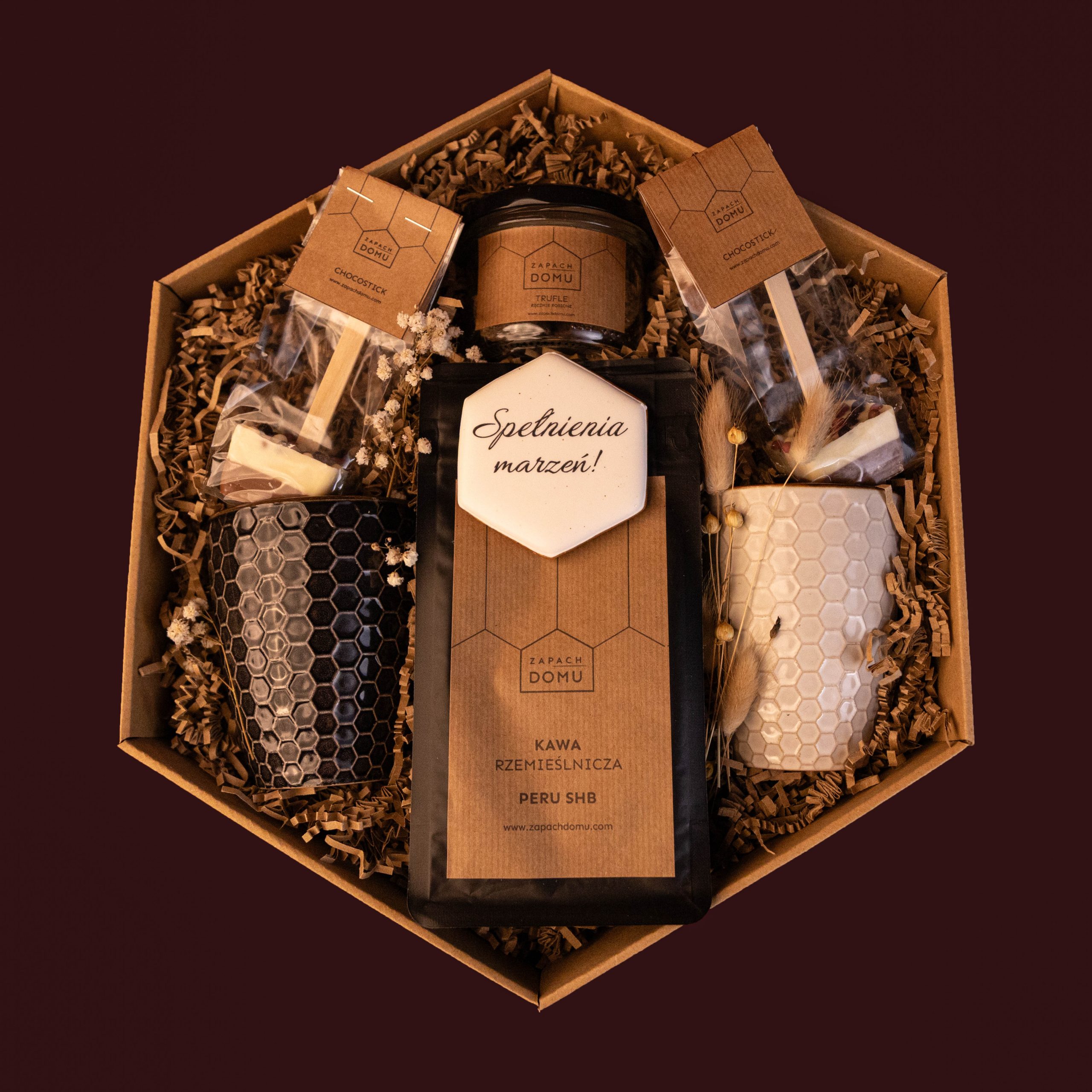 Spotkanie z najbliższymi to czas, gdy dom wypełnia się zapachem kawy, czekolady i radości wspólnego bycia razem. Zestaw „Aromatyczny dom” to prezent stworzony z myślą o chwilach spokoju, rozmów przy stole i drobnych przyjemnościach, które czynią ten czas wyjątkowym.